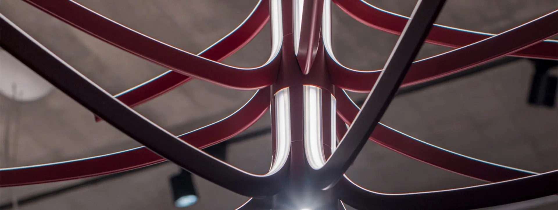 “We began by asking ourselves where the technology would take us: LEDs, in fact, offer new opportunities that enable us to work on the quality of the light and its distribution. Within the typology of a large, central overhead lamp, we wondered what might be the most essential form the LEDs would allow us to obtain. The outcome is the idea of the arm made with an LED strip, which became the starting point of the design.”
