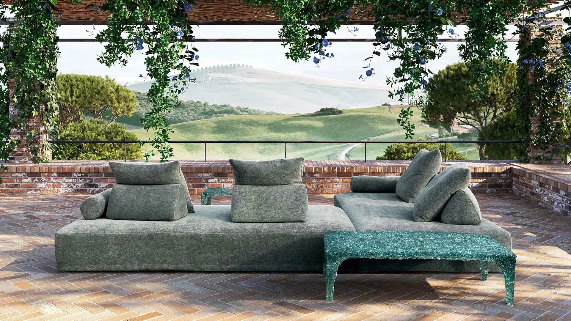 Infine, “Every Place” è la nuova collezione di tessuti presentati da Edra, realizzata con un filato prodotto a partire dal recupero di bottiglie in plastica 100% PET che veste i modelli On the Rocks, Sherazade e Standard, declinati in versione da esterno. Per quanto riguarda le prestazioni, questo rivestimento è in grado di garantire durabilità, abbinato a speciali strutture interne dei modelli, costruite in materiale traspirante e antimuffa. Le opzioni cromatiche vengono definite durante la fase di produzione – l’estrusione del filo – e garantisce una tenuta massima alla luce; la sensazione tattile è irregolare, tridimensionale e morbida. Le successive fasi di lavorazioni rendono la fibra prima e il tessuto poi, ignifugo e ideale per tutte le zone umide.