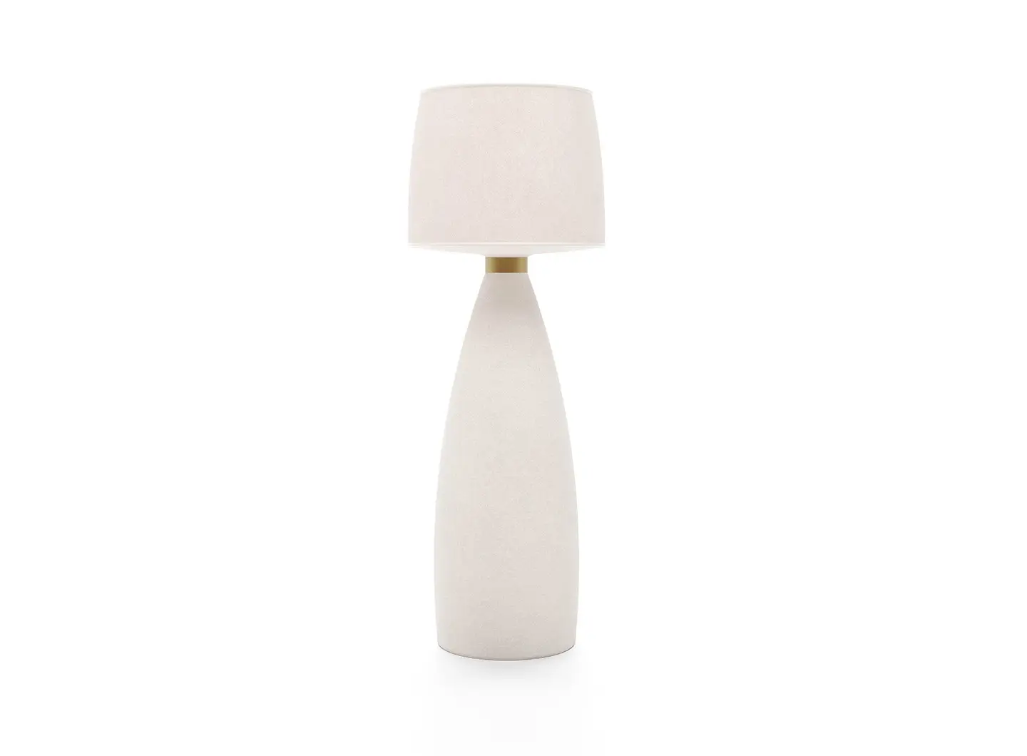 VELA Lamp reinterpreta l’archetipo di lampada a paralume con curve fluide e base slanciata. Il collare ottonato impreziosisce il volume, creando un elegante contrasto materico.